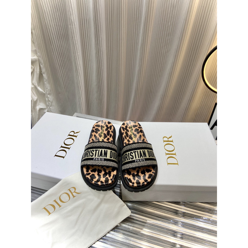 D*or chez moi slides embroidered cotton and shearling white