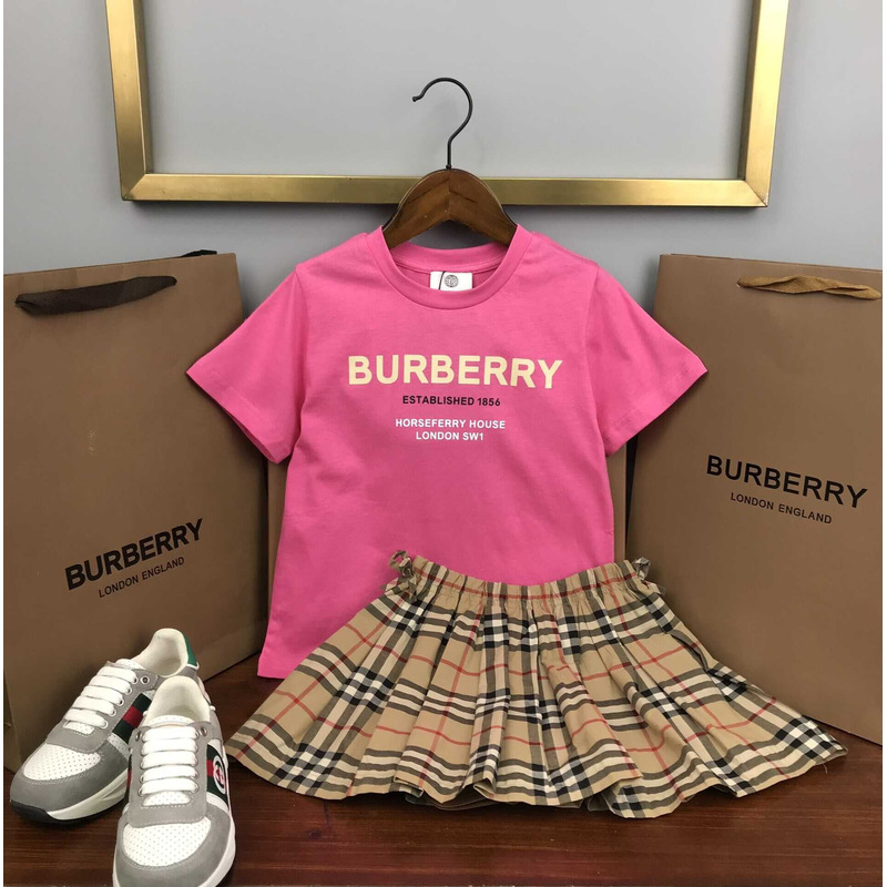 B**rry kids printed cotton t-shirt vintage check pleated skirt set