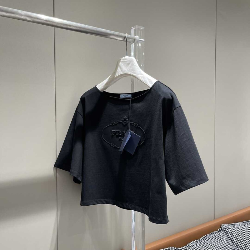 Miu Miu Jersey T-shirt Stripes Cotton Light Blue