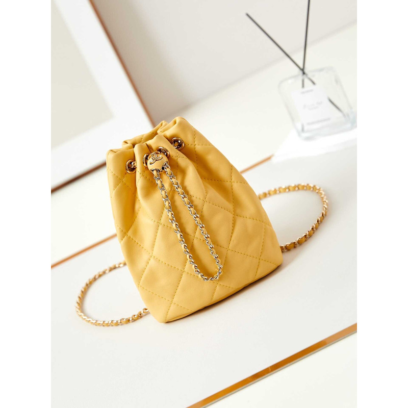 Ch*el backpack glossy lambskin and gold-tone metal yellow