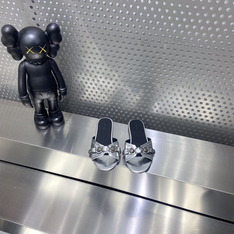 Ba*len*cia*ga cagole flats sandals in arena metallic lambskin silver