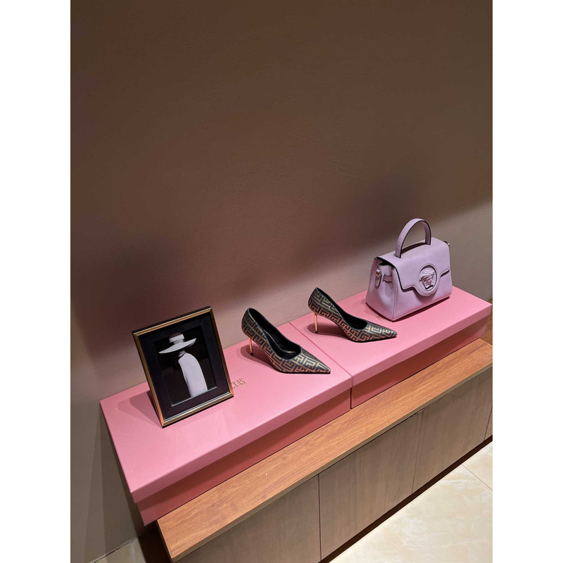 Balmain Logo Monogram Pointed Toe Pumps Blue&Yellow