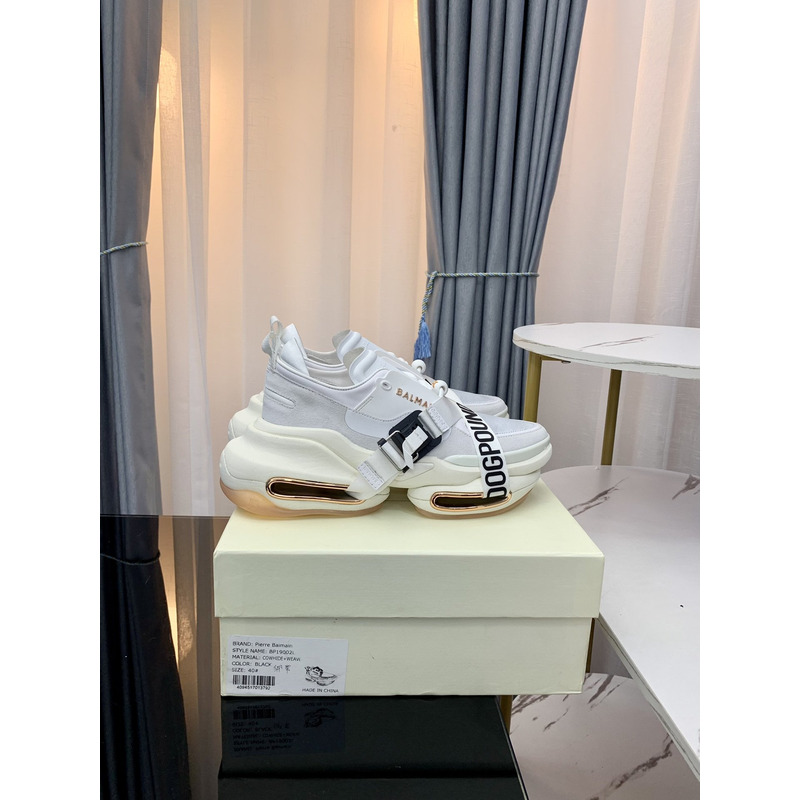 Balmain X Dogpound B-Bold Leather & Knit White Low Top Sneakers