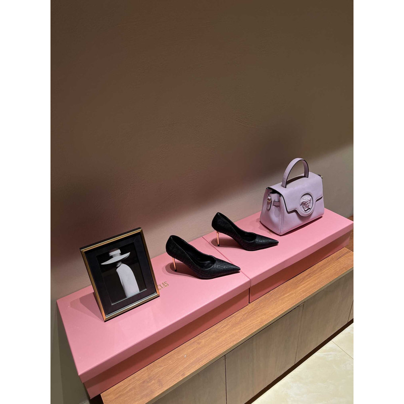 Balmain Logo Monogram Pointed Toe Pumps Black&White