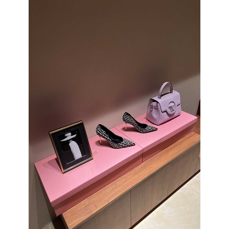 Balmain Logo Monogram Pointed Toe Pumps Rose Red