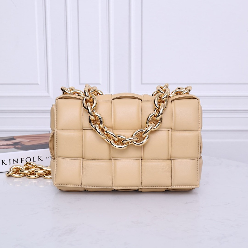 Bo*te*ga ve*ne*ta chain padded cassette gold-tone crossbody bag beige