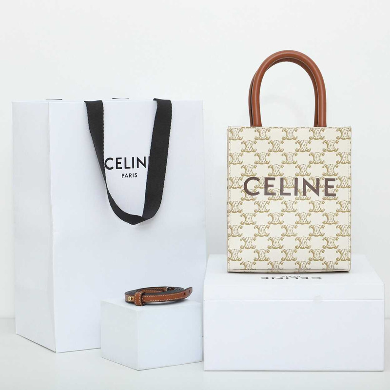 Ce**e vertical cabas triomphe canvas and calf leather with Ce**e printed mini tote bag