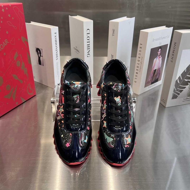 Ch**an louboutin loubishark flat metallic suede red sole runner sneakers