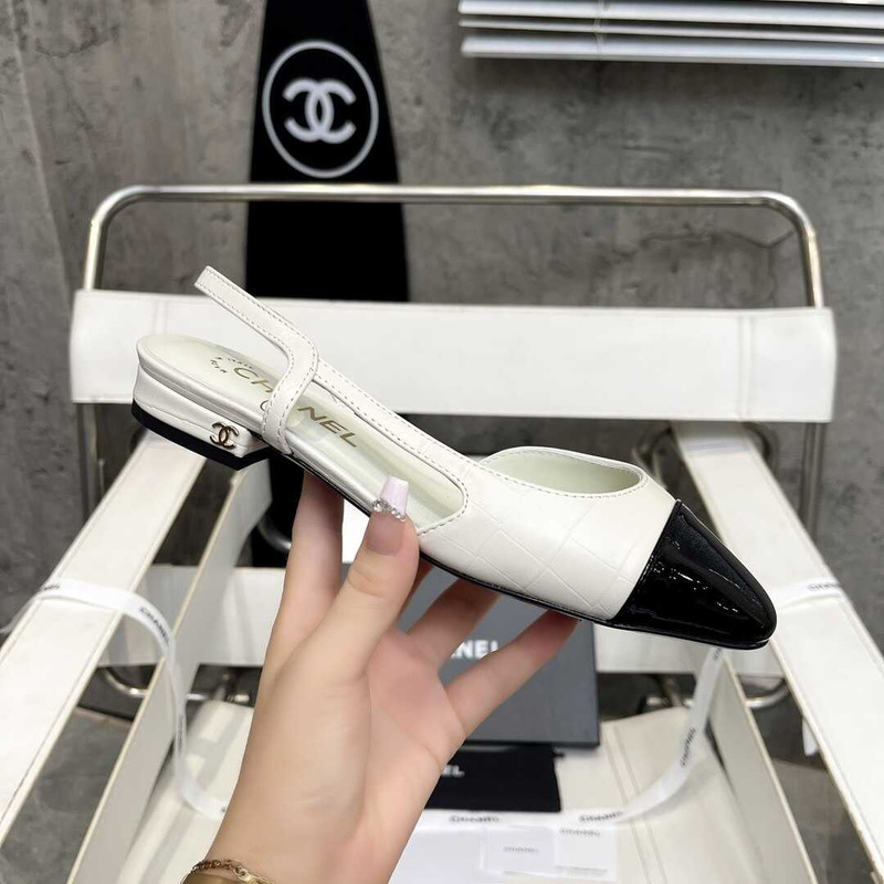 Ch*el moccasins lambskin & grosgrain white & black