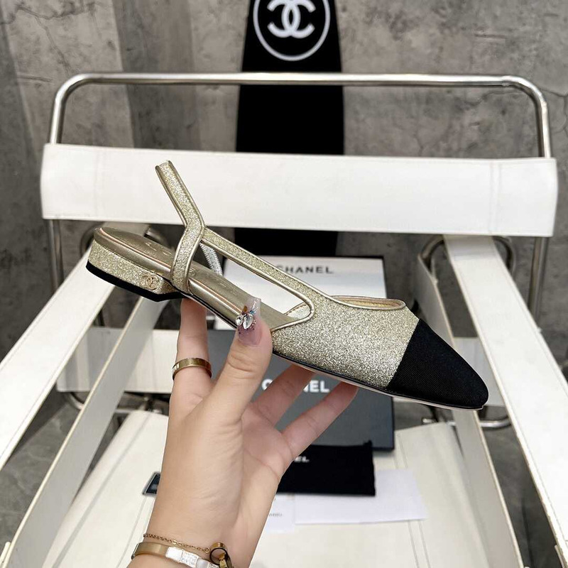 Ch*el strass 20mm slingbacks silver black grosgrain