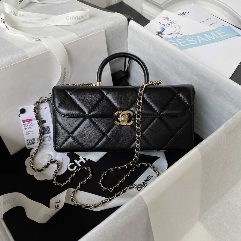 Ch*el mini flap bag lambskin & gold-tone metal blue