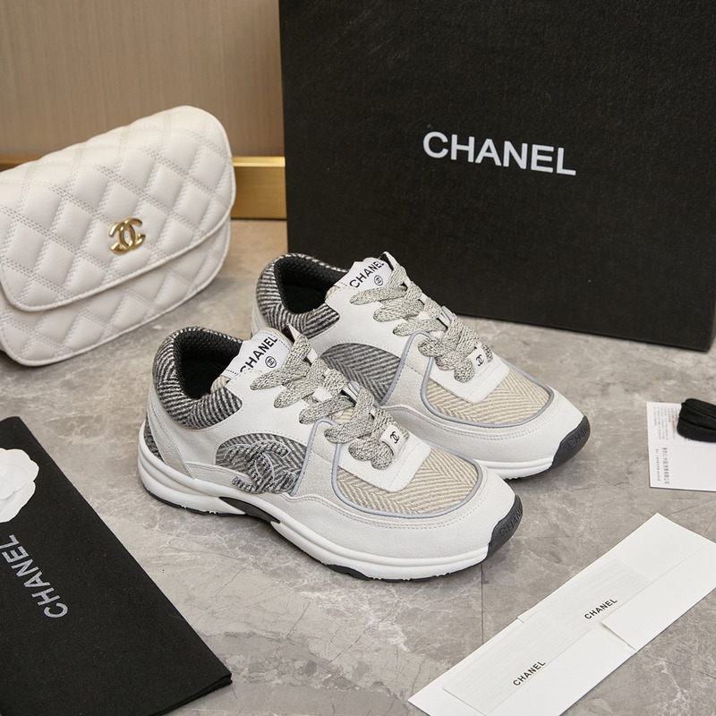 Ch*el sport shoes fabric calfskin ivory light grey