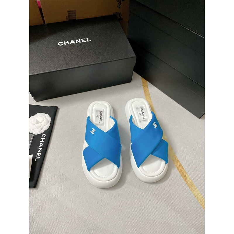 Ch*el strass 20mm slingbacks silver black grosgrain