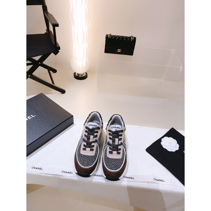 Ch*el espadrilles glittered cotton tweed & lambskin black & white