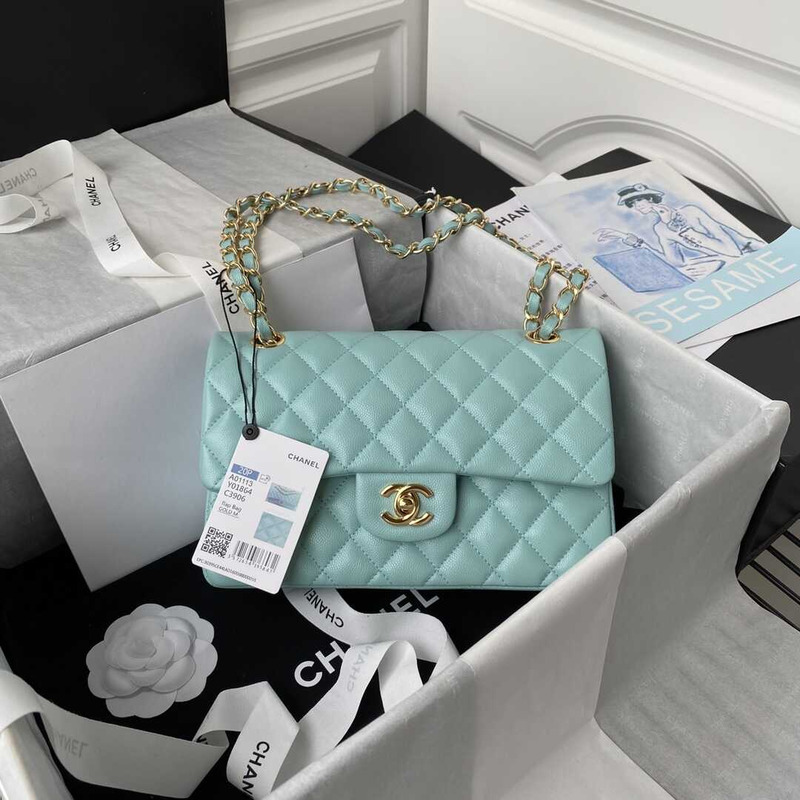 Ch*el mini flap bag with top handle lambskin & gold-tone metal green