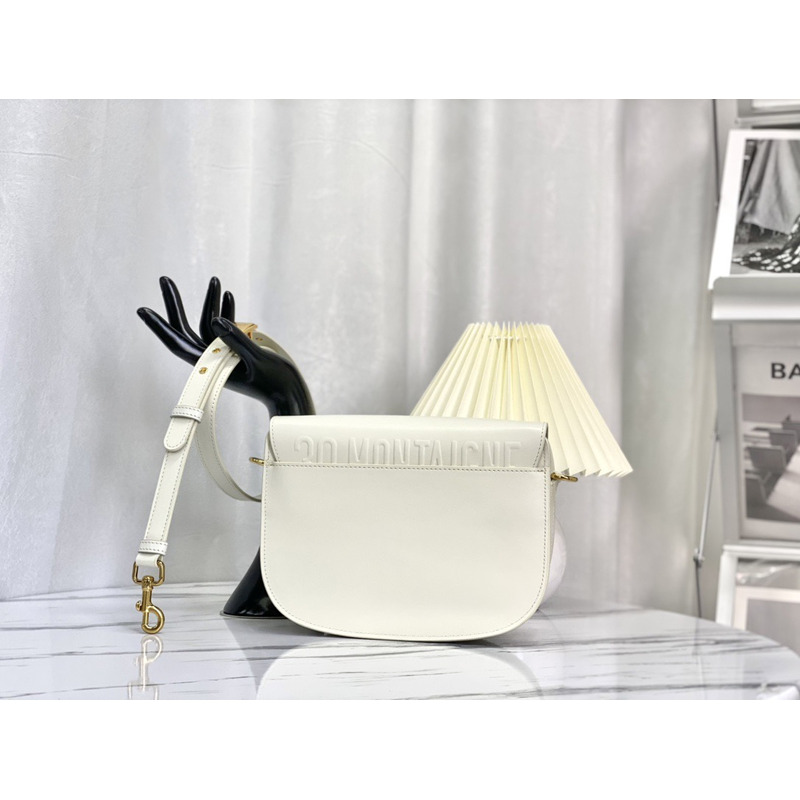 D*or cd signature bag with strap cd-embossed box calfskin white