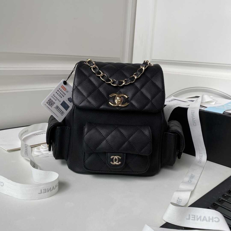 Ch*el small backpack grained shiny calfskin & gold-tone metal black