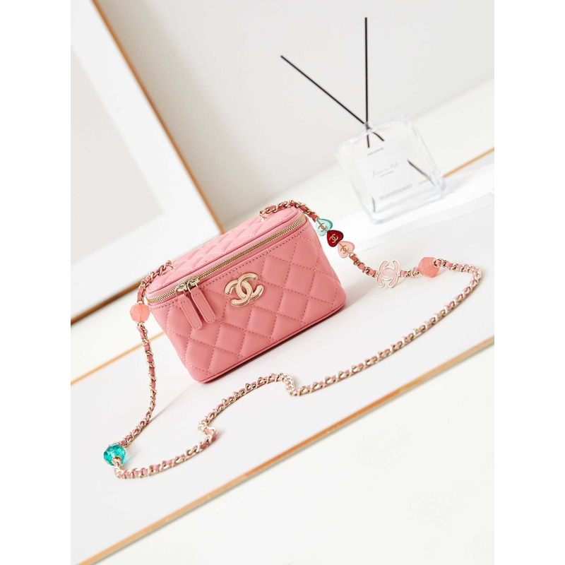 Ch*el 22 mini handbang shiny calfskin & gold-tone metal pale black