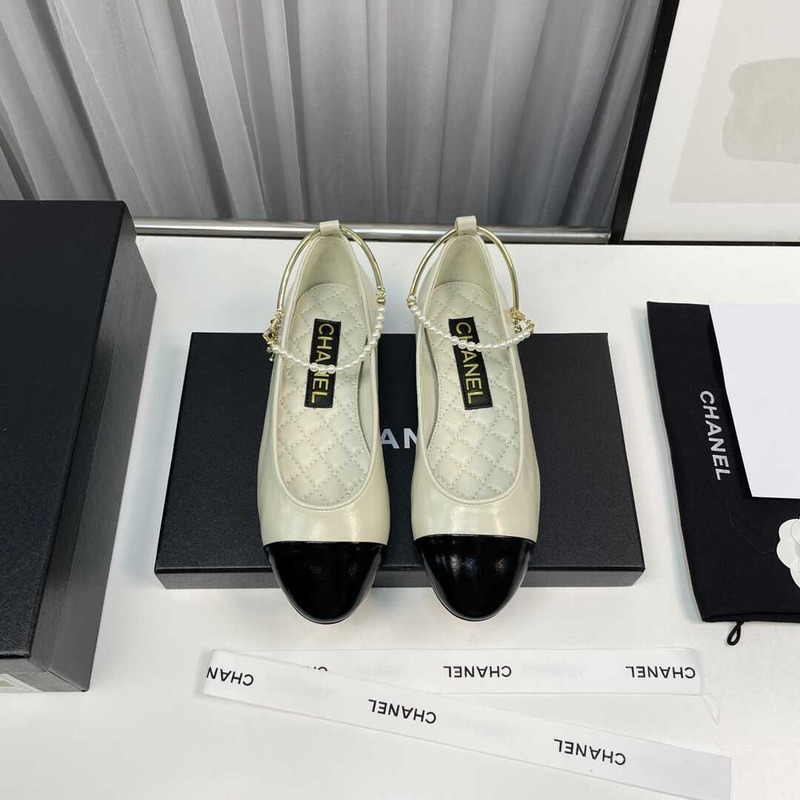 Ch*el plain leather logo ballet shoes green and black