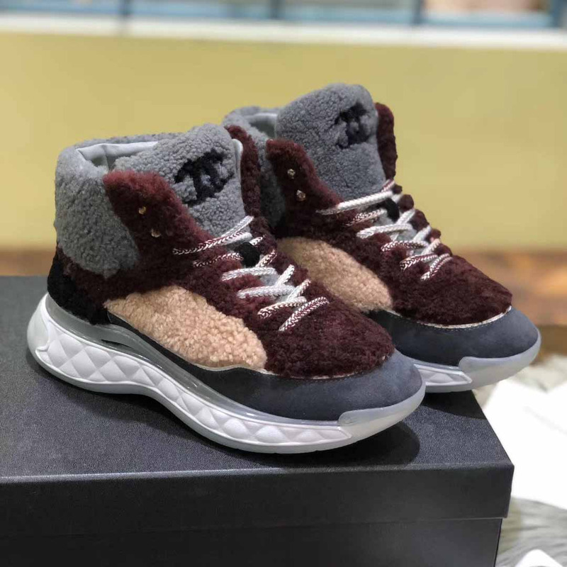 Ch*el chane1 suede calfskin sneakers in grey/orange/black
