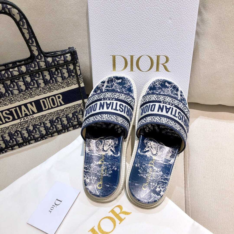 D*or dway slides toile de jouy reverse embroidered cotton navy