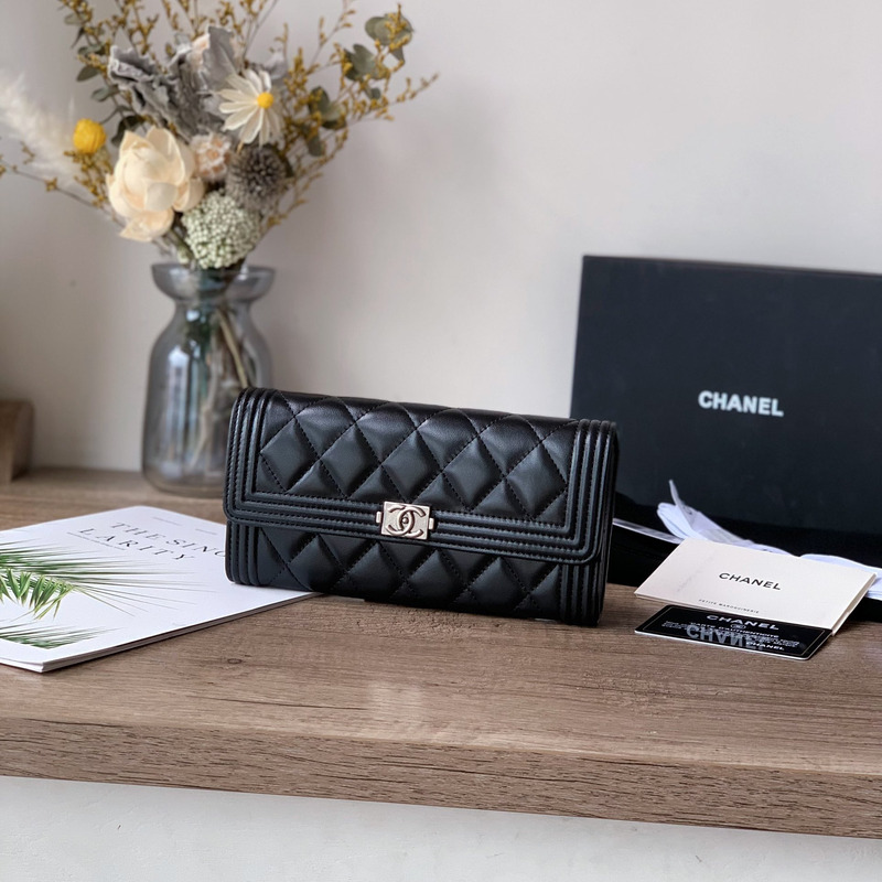 Ch*el boy Ch*el long flap wallet silver tone metal black