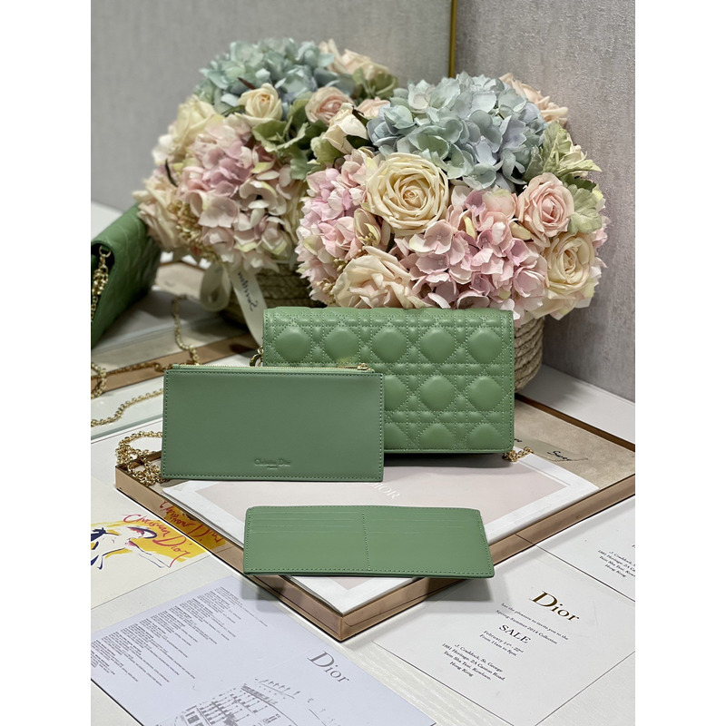 D*or lambskin chain clutch 21.5 x 11.5 x 3cm olive green