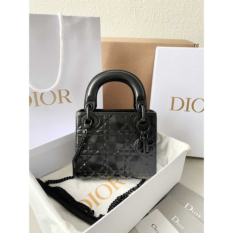 d*or black leather Di*m*nd shaped cannage lady d*or bag