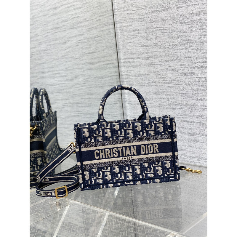 D*or medium D*oriviera D*or book tote embroidery beige and blue
