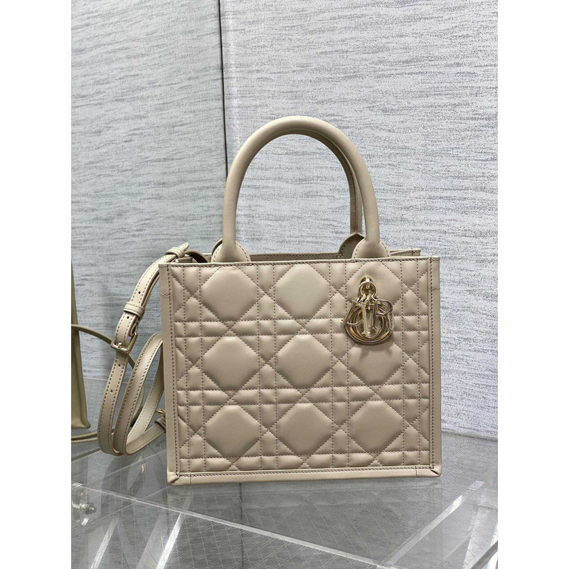 D*or medium D*or book tote beige macrocannage calfskin