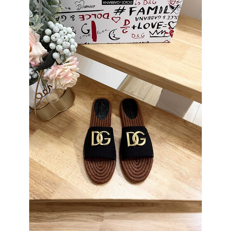 Dolce & Gabbana Bianca Raffia Sliders Beige