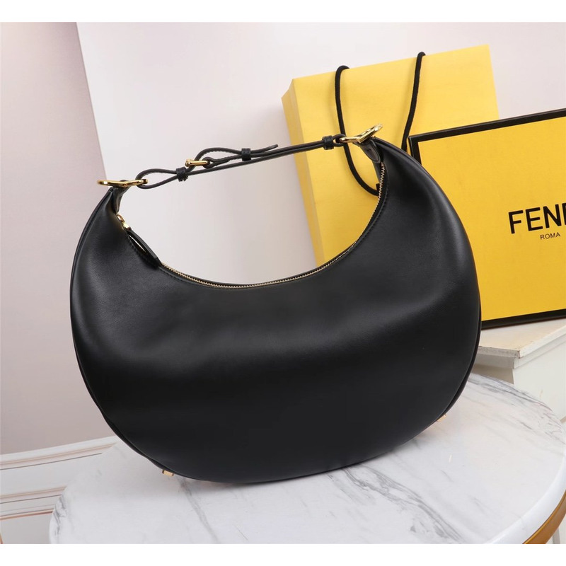 F**di graphy large laminated leather bag black