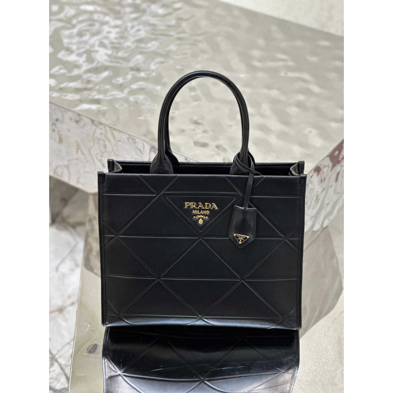 Pra*a medium leather handbag with topstitching black