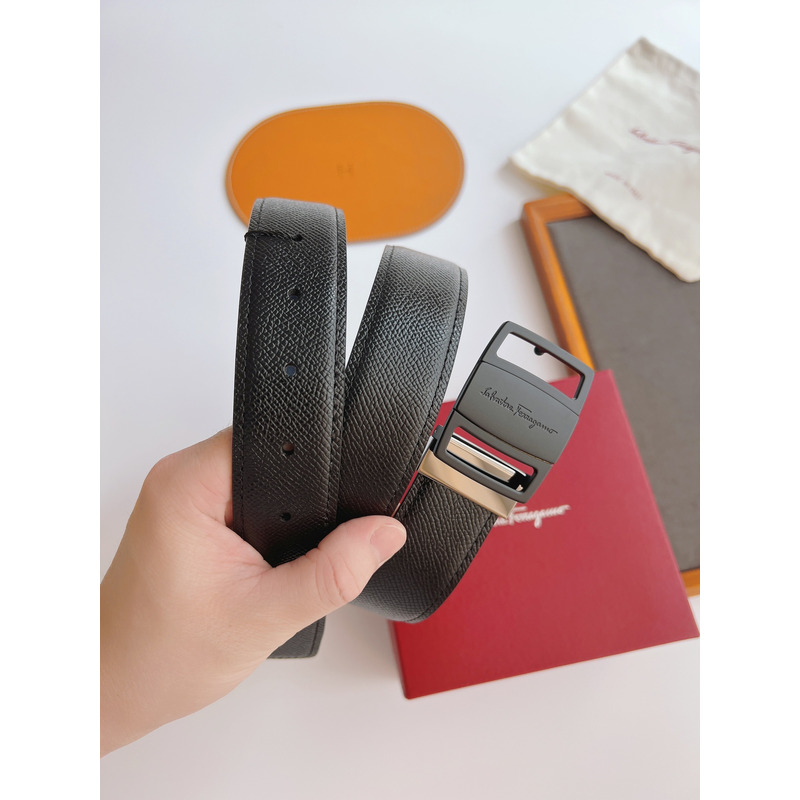 Ferragamo Reversible and Adjustable Belt Black&Light Gold
