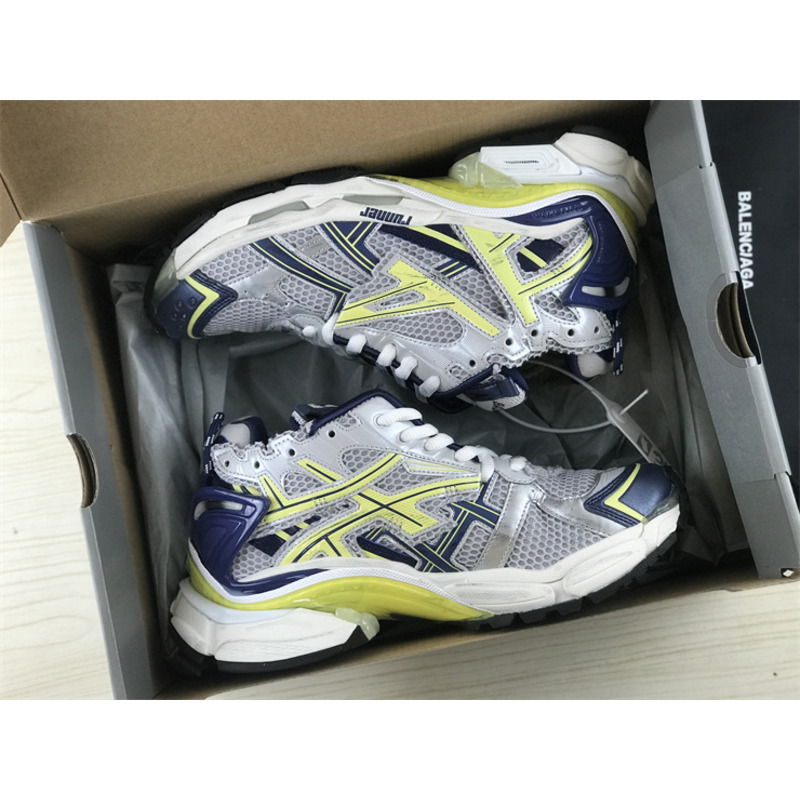 Ba*len*cia*ga men\''s stapler sneaker in white/pink/neon yellow/silver