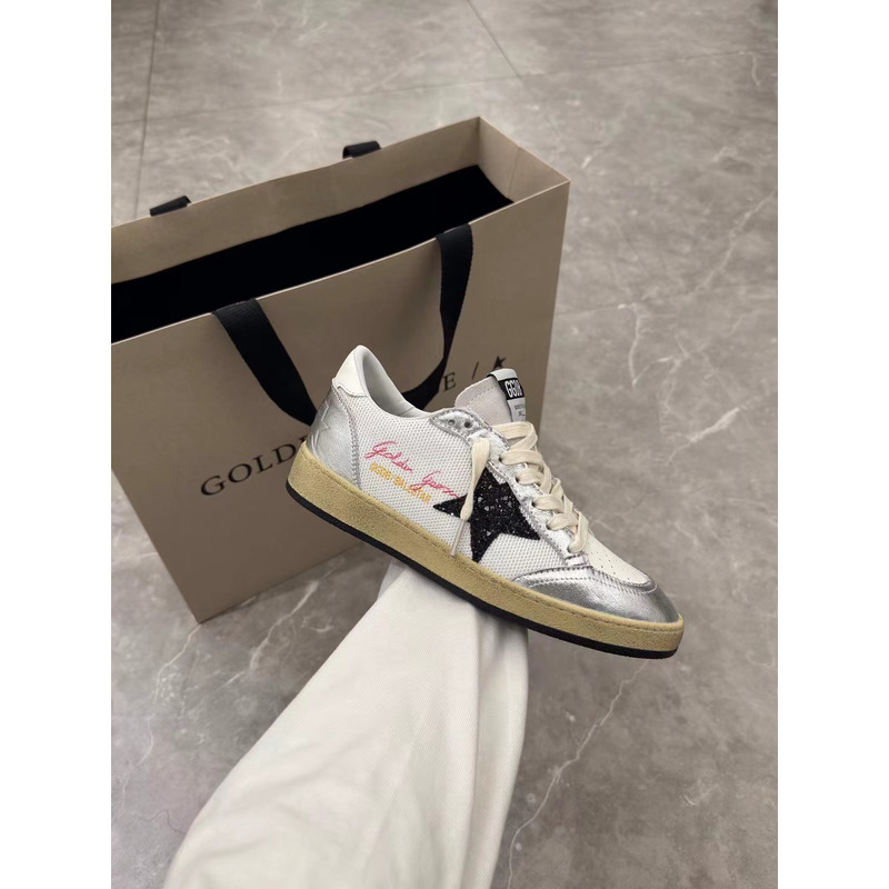 GGDB Ball Star Sneakers In White Nappa Gliter Grey