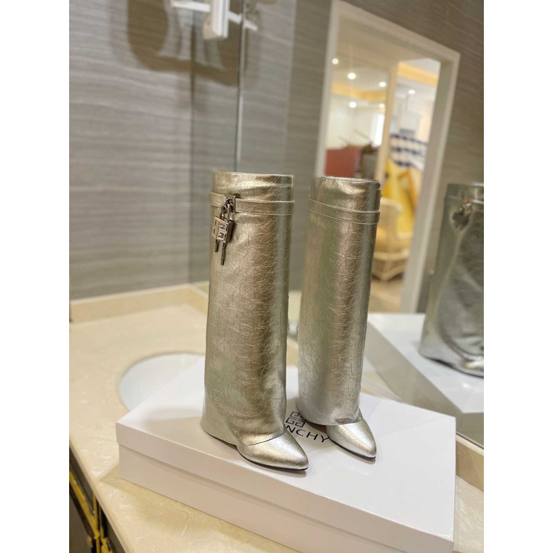 Givenchy Shark Lock Embellished Long Boots Gold