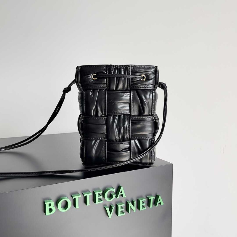 Bo*te*ga ve*ne*ta small sheepskin cassette bucket bag black