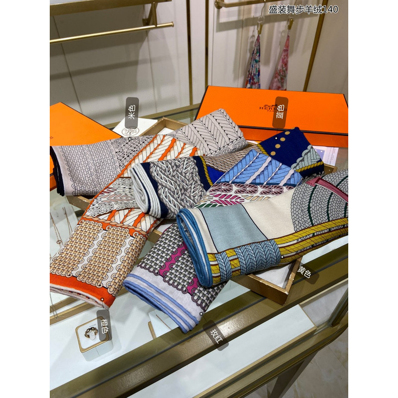 H**mes dressage tressage shawl 140 naturel / bleu / rouge