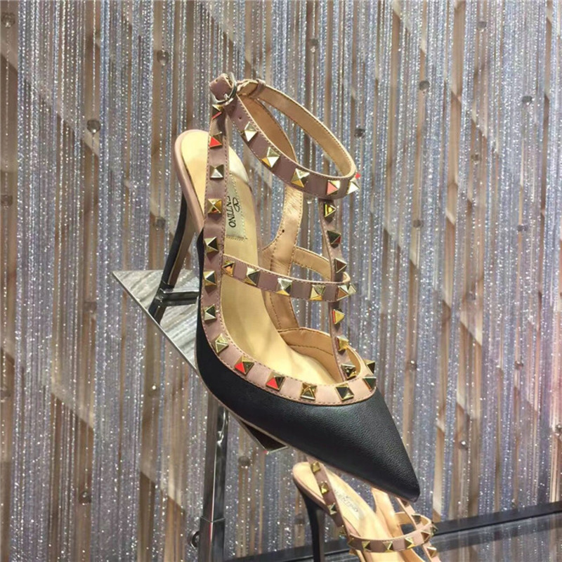 Valentino Noir Rockstud Leather T-Strap Heel Pumps Women