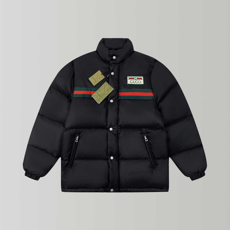 G*u*i men\''s web stripe nylon-shell quilted down jacket black