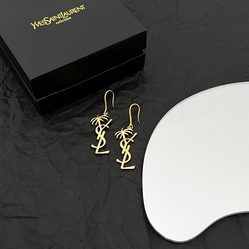 Saint Laurent Monogram Palm Tree Earrings Gold