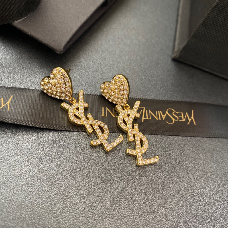 Saint Laurent Earrings With Heart Crystal Gold