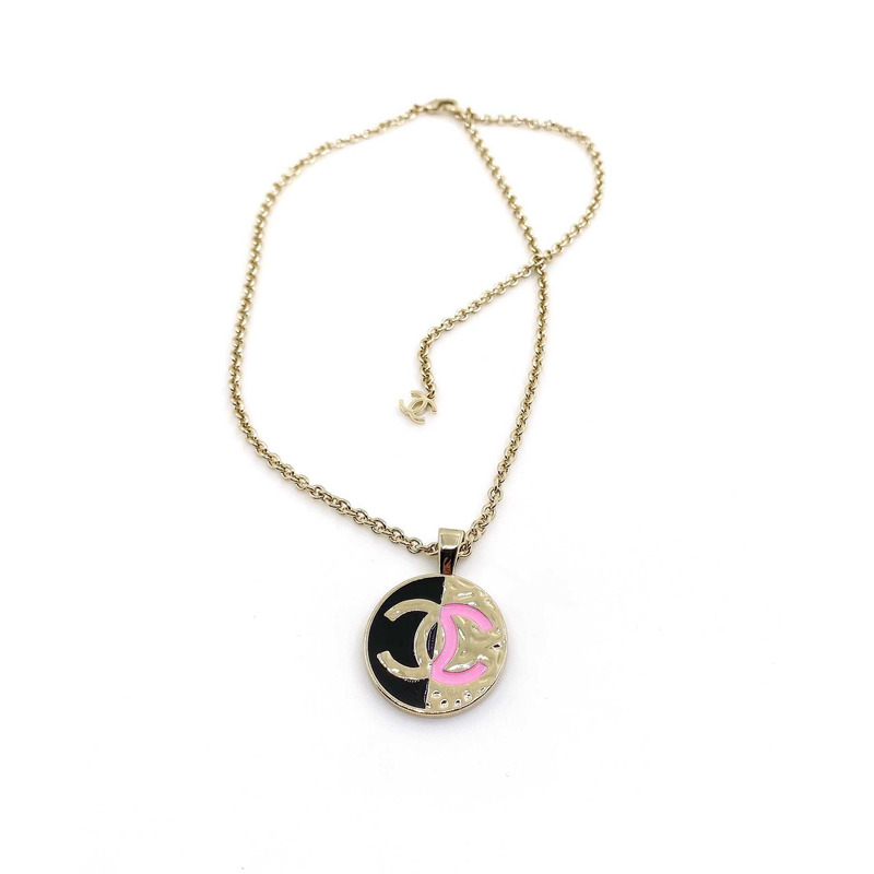 Ch*el pendant necklace metal gold black and pink