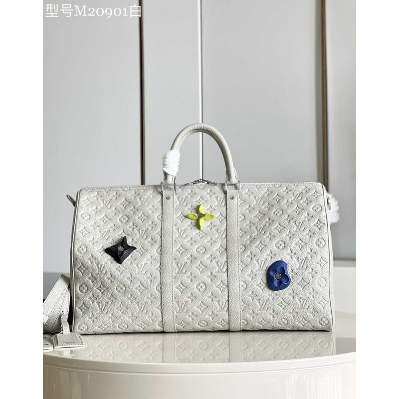 l**is V*t*n keepall 50 travel bag taurillon monogram embossed calfskin white
