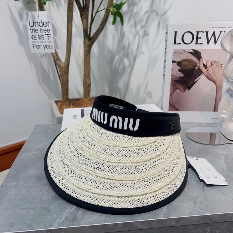 Miu Miu Straw Duck Tongue Empty Top Hat White