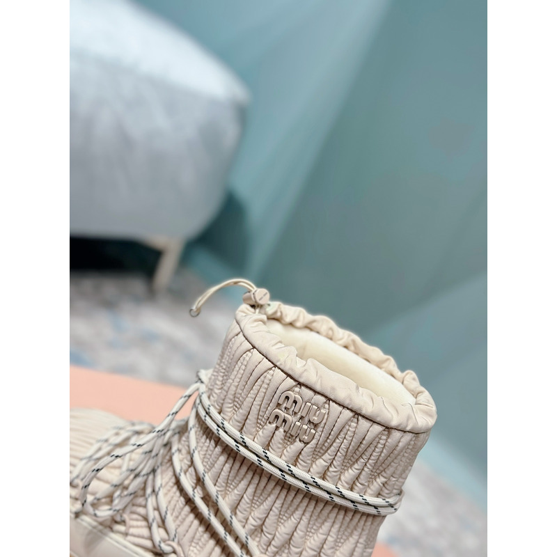 Miu Miu Logo Winter Fluffy Fur Slippers Beige