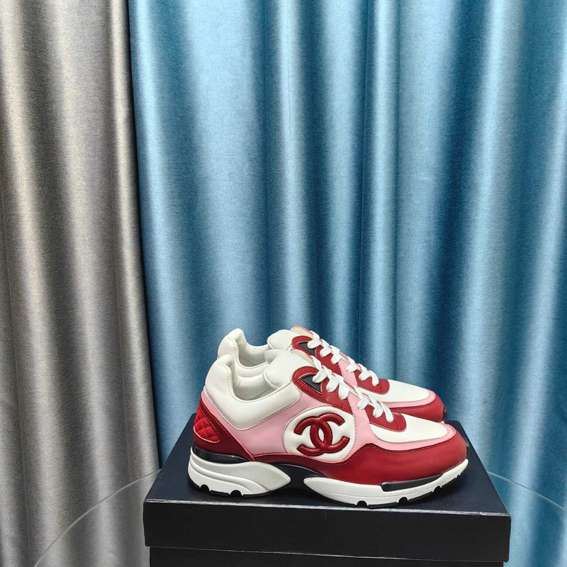 Ch*el calfskin light burgundy sneakers white & pink