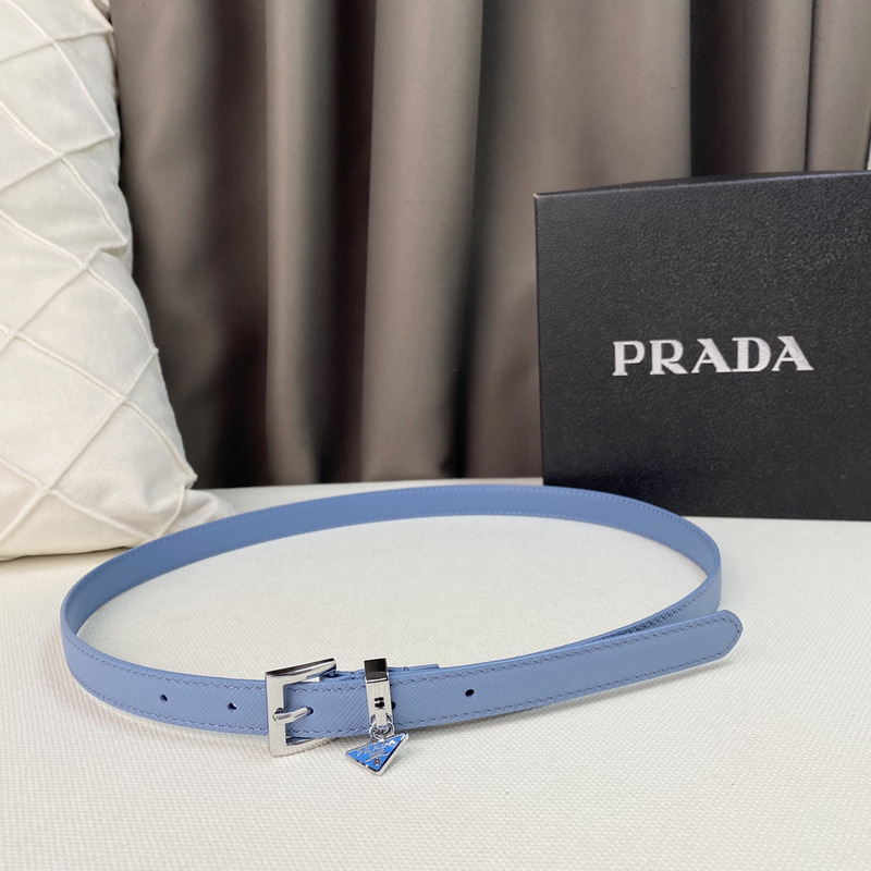 Pra*a triangle logo saffiano razor women belt blue