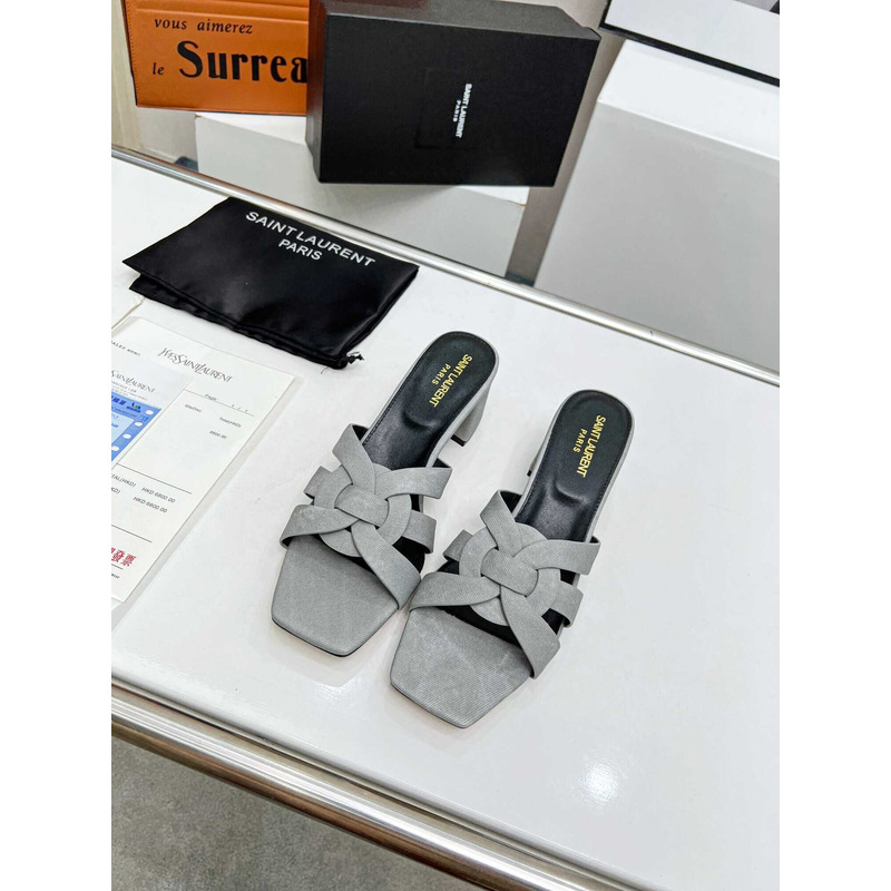 Saint Laurent Tribute Denim Mid-heel Mule Shoes Silver